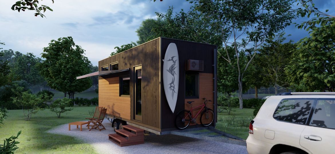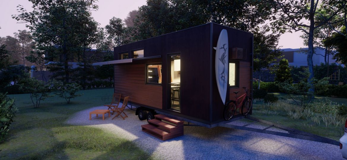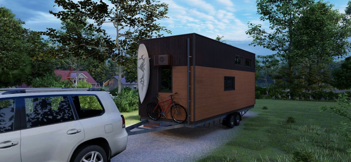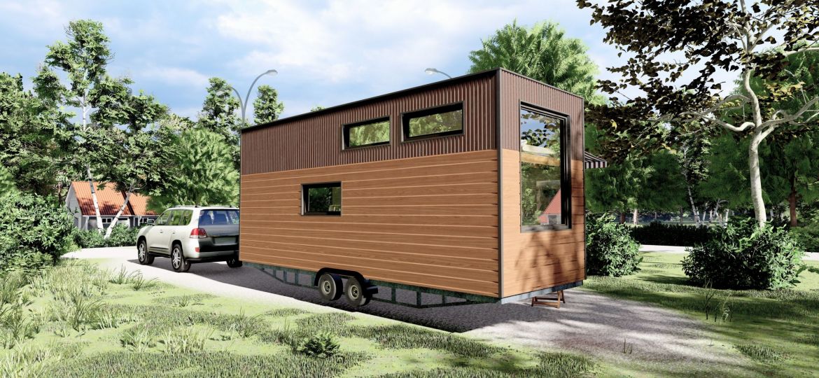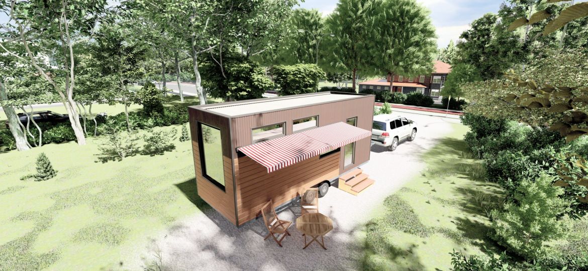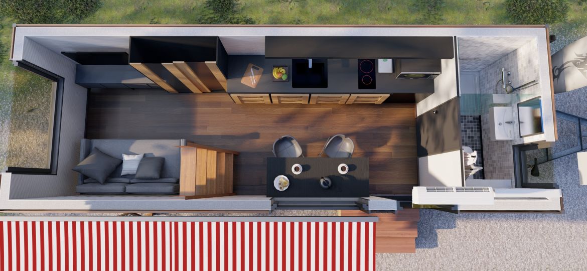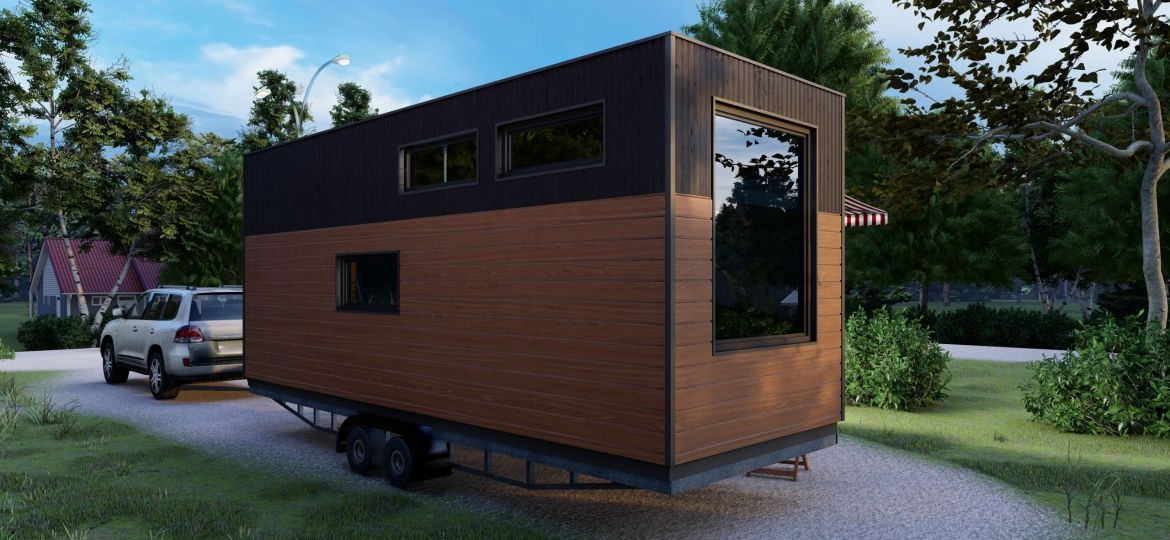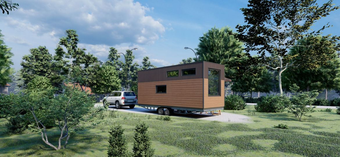 Das Tiny House auf Rädern mit einer Fläche von 22 Quadratmetern. Dieses mobile Minihaus bietet Ihnen die Freiheit, zu reisen und neue Abenteuer zu erleben, während Sie den Komfort eines eigenen Zuhauses genießen. Es verfügt über eine gemütliche Wohnfläche, eine praktische Küche, ein komfortables Schlafzimmer und ein Badezimmer. Egal, ob Sie am Strand, in den Bergen oder auf einem Campingplatz sind, dieses Tiny House auf Rädern ermöglicht es Ihnen, Ihre Reiseziele flexibel zu gestalten.